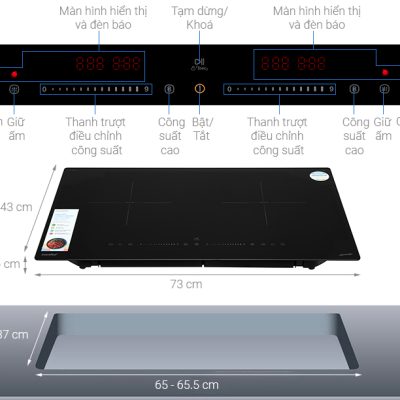 - Bếp từ đôi trang bị AI Inverter tiết kiệm điện năng hiệu quả.