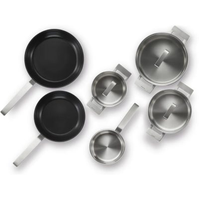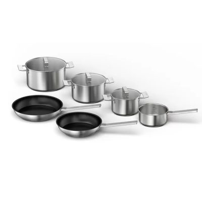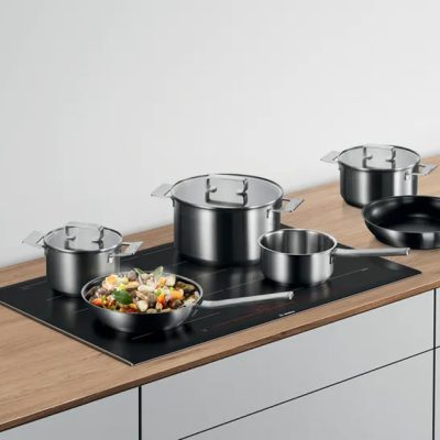 Bộ nồi inox Bosch HEZ9SE060 bao gồm 1 quánh Ø16cm, 3 nồi Ø16/20/24cm và 2 chảo chống dính Ø24/28cm, đáp ứng đầy đủ nhu cầu nấu nướng hàng ngày của gia đình. Chất liệu nồi inox sáng bóng, bền chắc, an toàn sức khoẻ, chống ăn mòn, chống gỉ sét và đặc biệt là đáy 3 lớp có thể dùng với mọi loại bếp, kể cả bếp từ. Chảo phủ chống dính bền bỉ, an toàn và dễ vệ sinh.