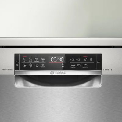 4. Kết nối thông minh Home Connect Với ứng dụng Home Connect trên điện thoại, bạn có thể kiểm soát máy rửa bát mọi lúc mọi nơi. Các tiện ích bao gồm: khởi động máy từ xa, kiểm tra tình trạng chương trình rửa, nhận thông báo khi hết muối/nước bóng, và thậm chí điều khiển máy bằng giọng nói.