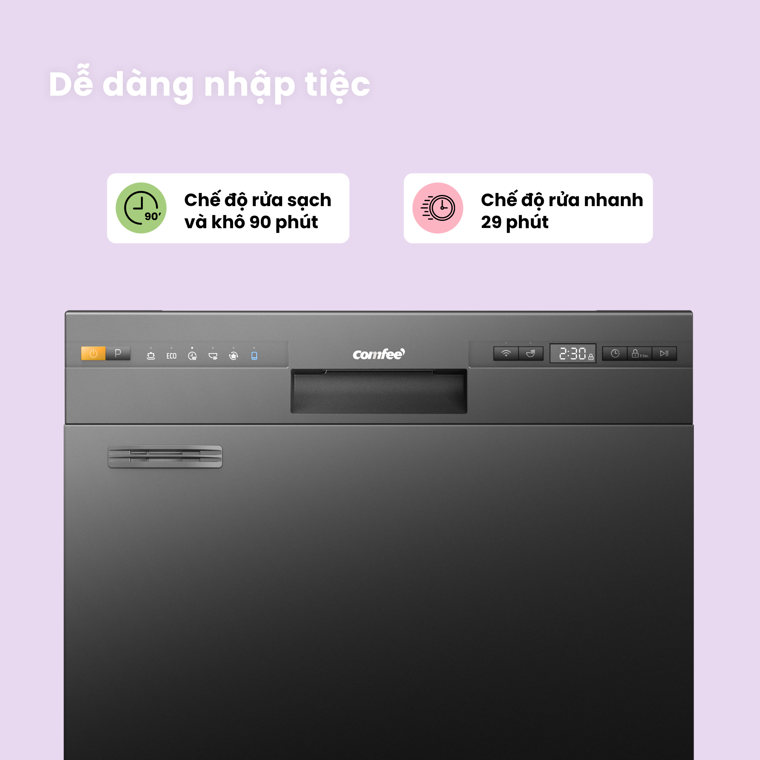 Máy rửa chén COMFEE CDW 10F60TB sẽ khiến bạn ngạc nhiên với hiệu suất xuất sắc cùng công nghệ tiên tiến và thiết kế hiện đại sẽ tô điểm căn bếp của bạn. Dù là thiết kế âm tủ, độc lập hay để bàn, máy rửa chén CDW-10F60TB-1 của Comfee không làm mất đi sự hài hòa với bất kỳ phong cách trang trí nào trong ngôi nhà của bạn.