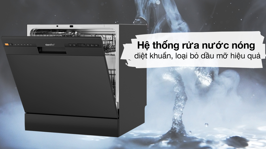 – Máy rửa chén COMFEE CDW 8F60RB được trang bị hệ thống khay rửa rộng rãi, có thể chứa khoảng 10 bộ chén đĩa theo tiêu chuẩn châu Âu.